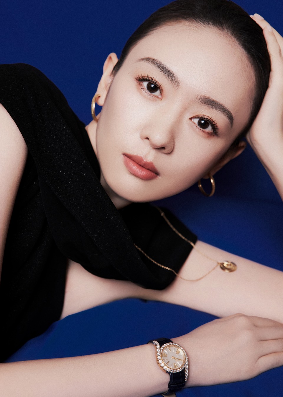 迪丽热巴清爽蓝白色系