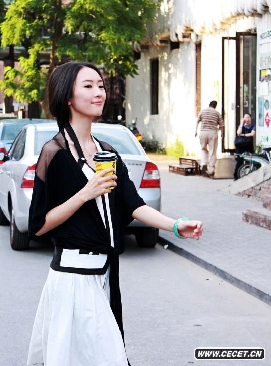 童瑶秋日街拍写真 演绎游走黑白世界潮女
