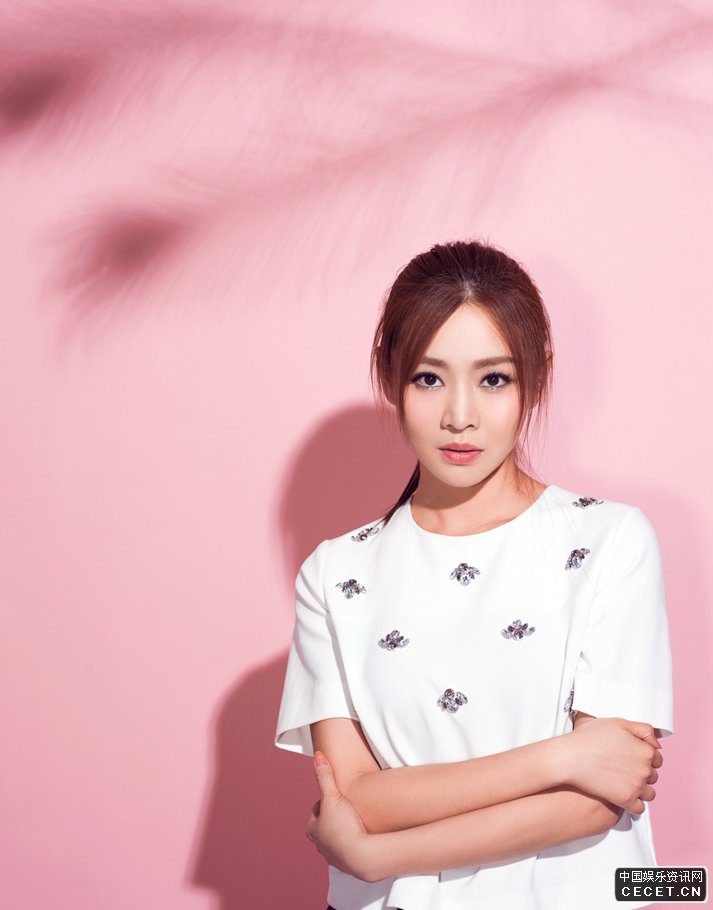 王维维曝光时尚写真 短T搭配藏蓝色的短裙