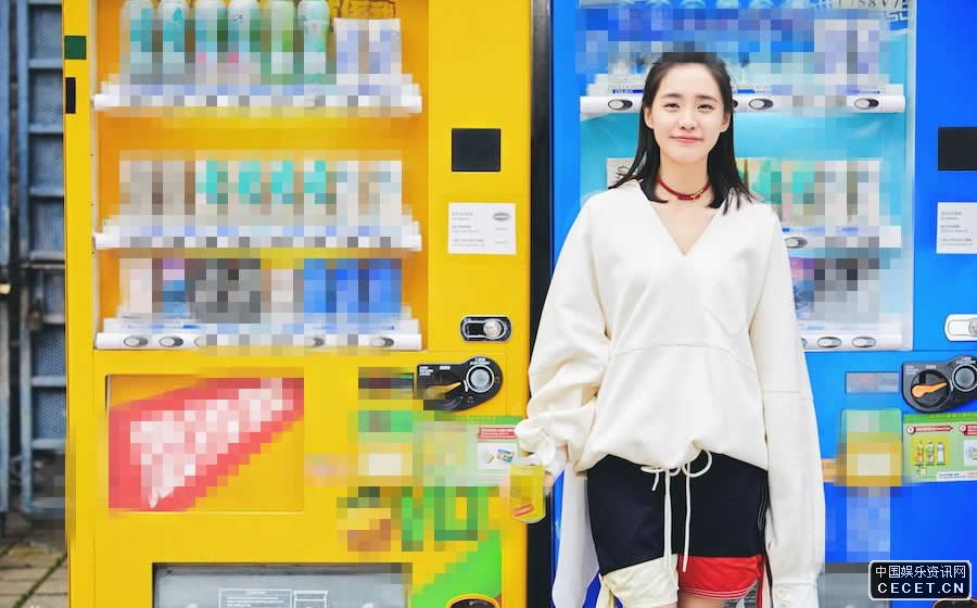 王智丸子头氧气系街拍 白色宽松上衣搭配短裤