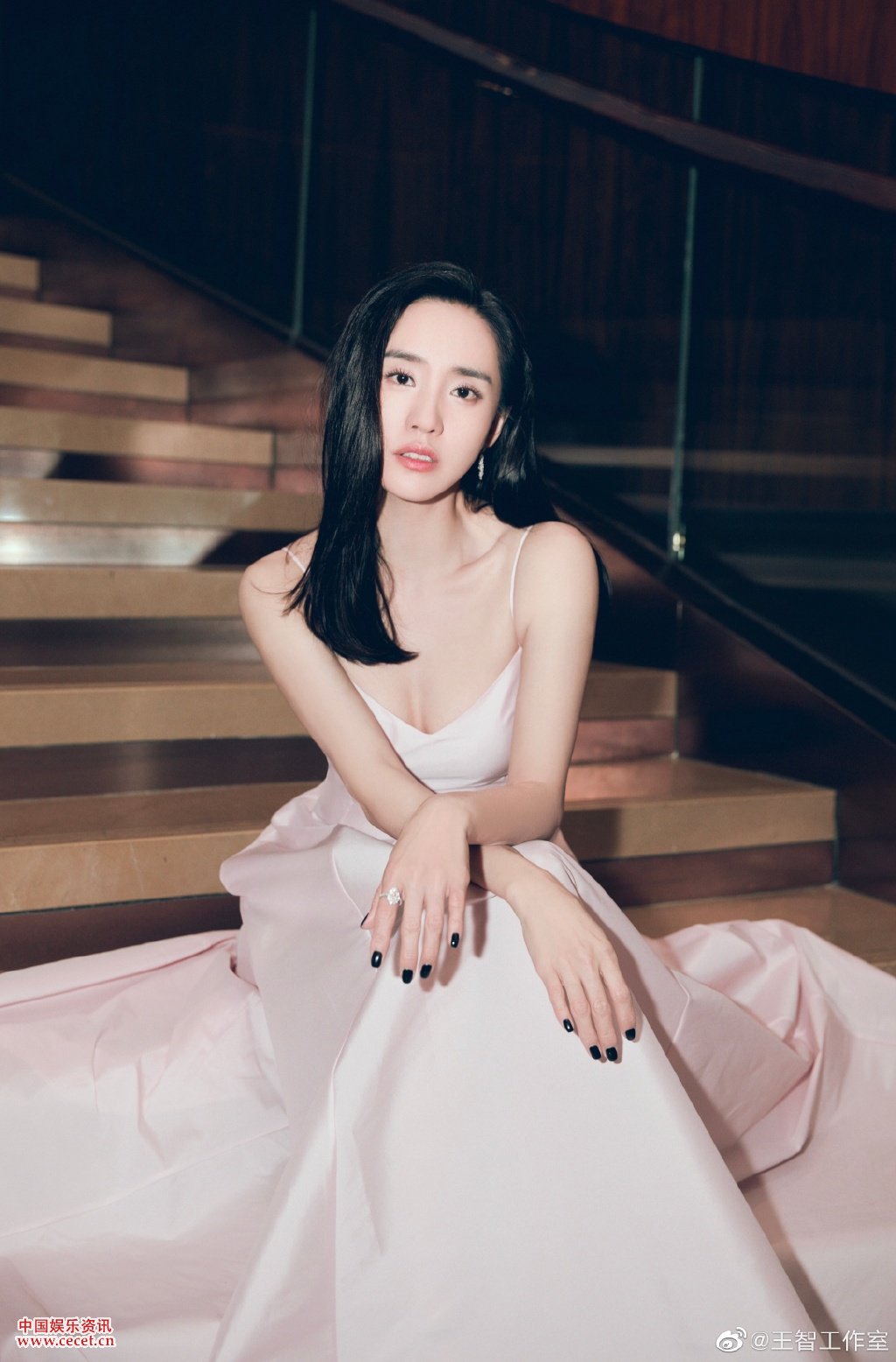 王智淡粉吊带礼服亮相 秀发拂肩优雅迷人