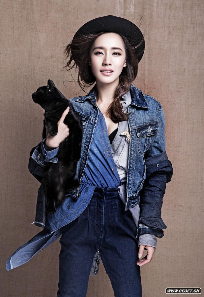 王智手抱黑猫拍大片 巧搭牛仔个性魅力