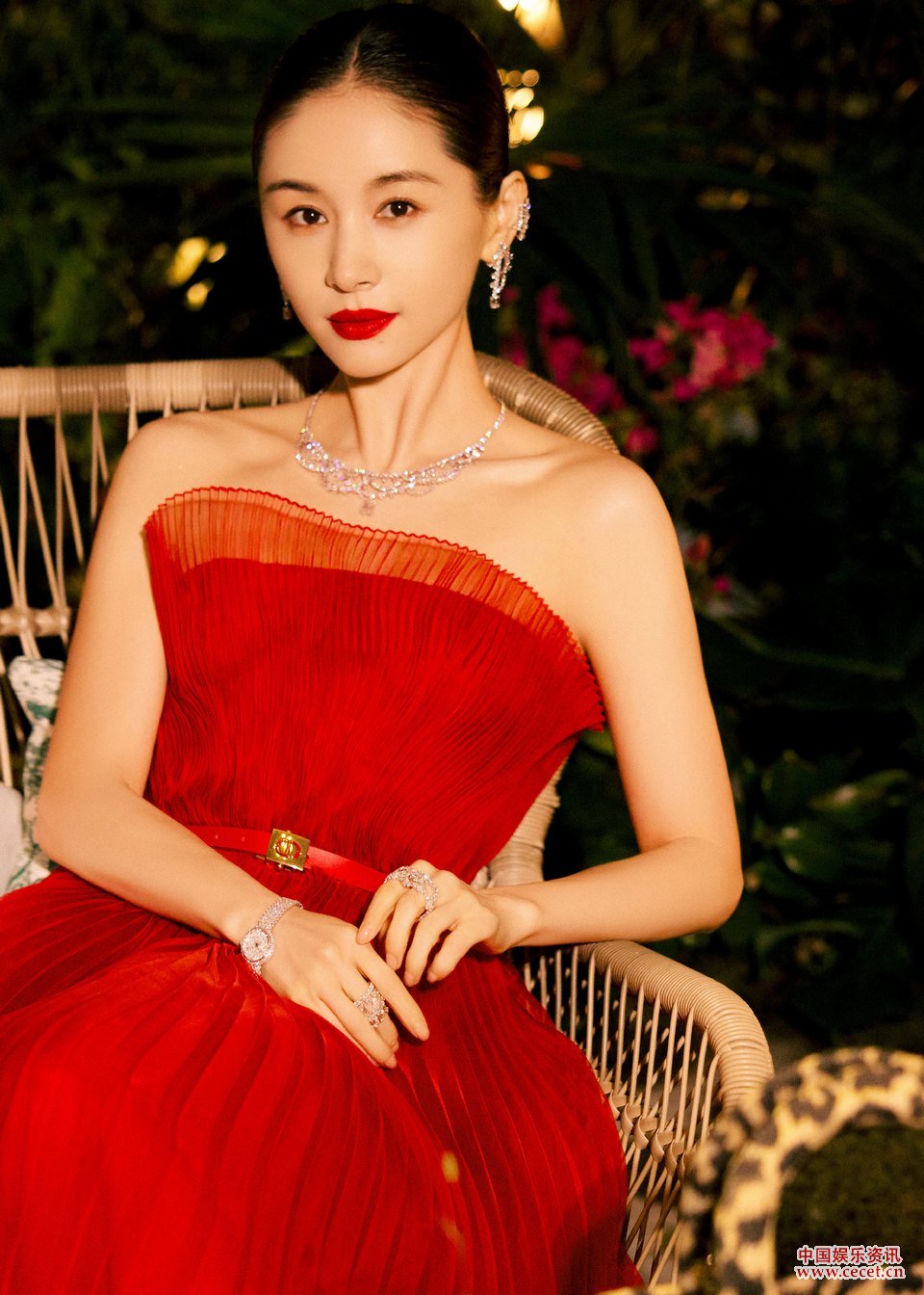 王子文红色纱裙明艳动人 馥郁妩媚予红温柔