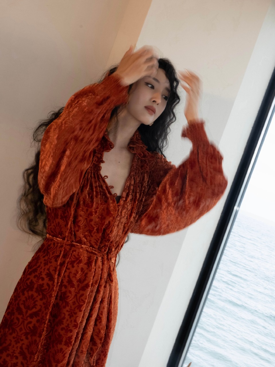 王紫璇红裙翩跹绽放生姿 光影之间邂逅隽永风姿