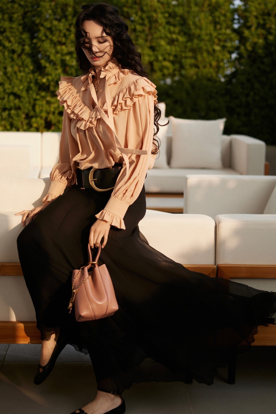 王紫璇椰风海韵墨纱翩跹 粉黛映空摇曳生姿