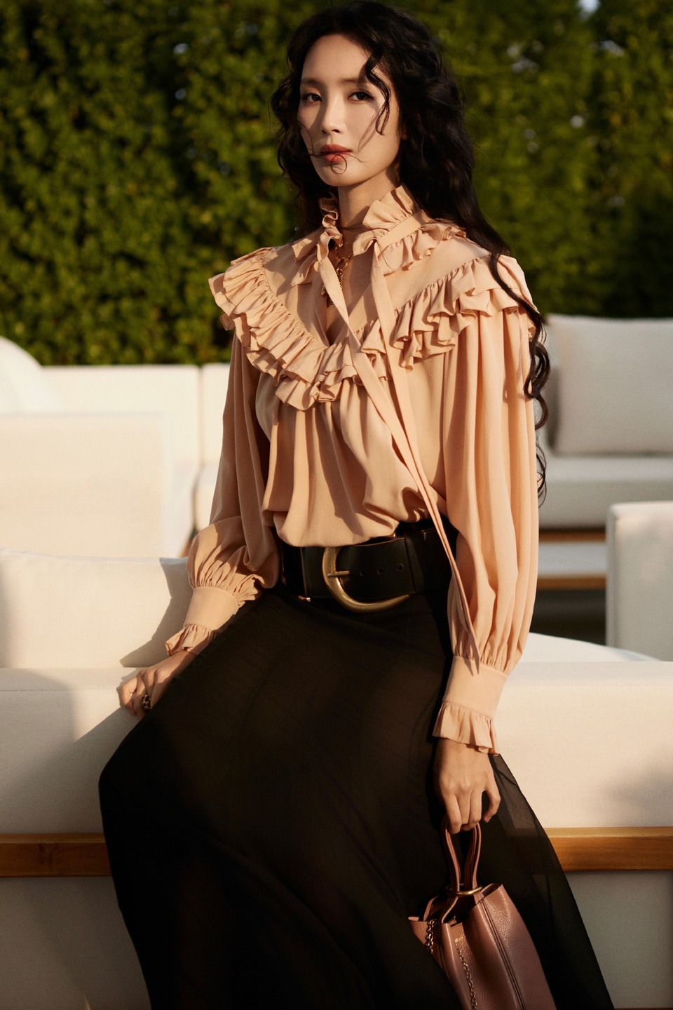 宋妍霏以一袭淡粉在氤氲烟霭中将