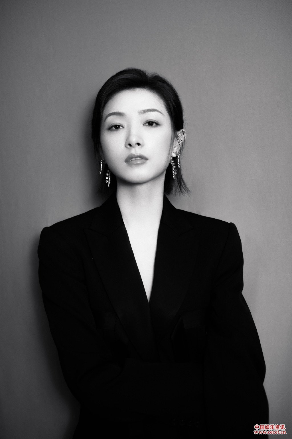 万茜黑色西装套装现身 清冷的气质泰然自若