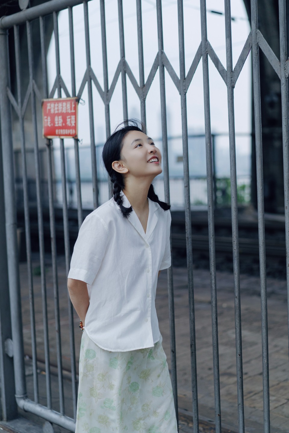 吴倩江波桥影临摹成画 倩影依栏白衫静立
