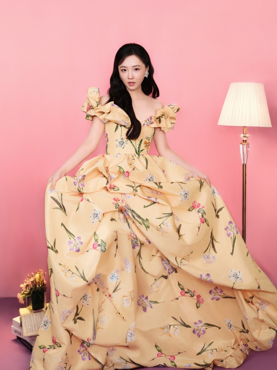吴倩轻提罗裙公主款款而来 轻拢裙间花影同赴之约