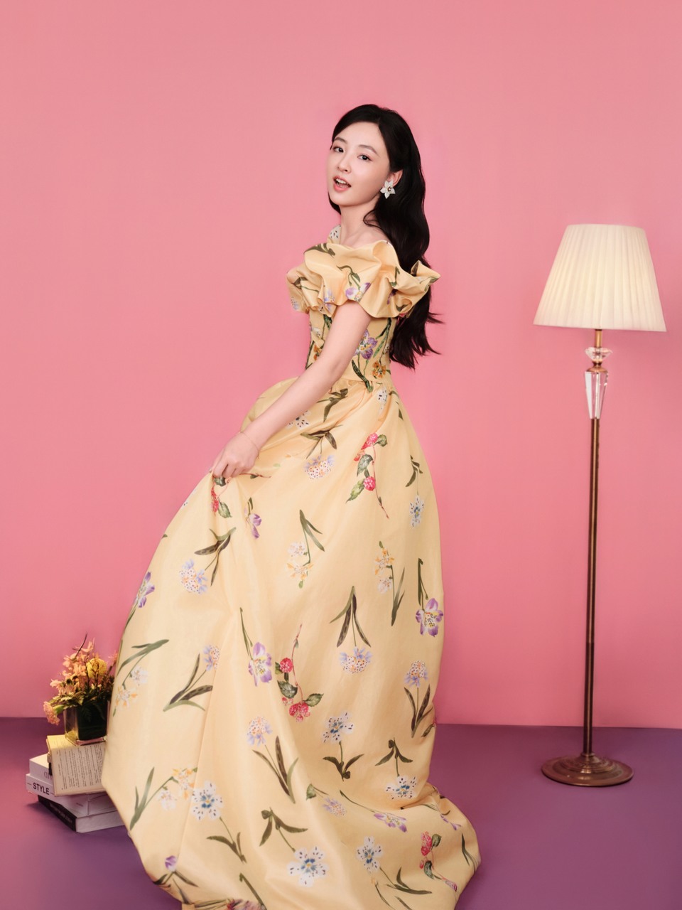 吴倩轻提罗裙公主款款而来 轻拢裙间花影同赴之约