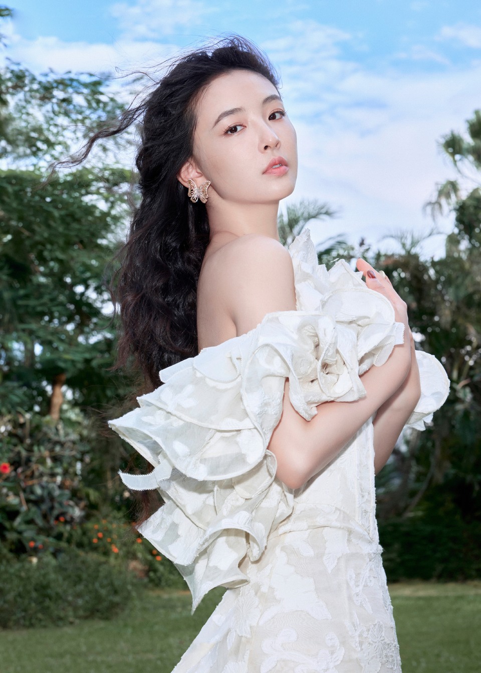 陈卓璇云褶缎裙冰绡流转间