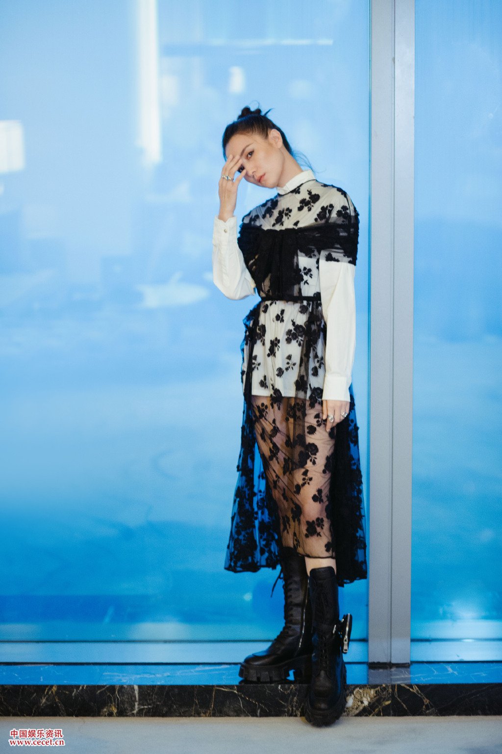 宋佳身着黑白蕾丝绑带纱裙 造型依然超飒