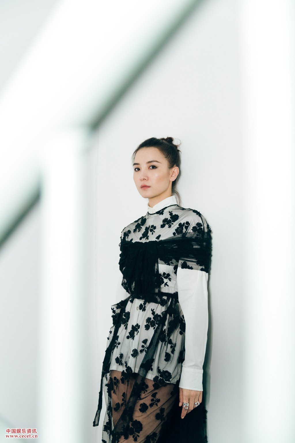宋佳身着黑白蕾丝绑带纱裙 造型依然超飒