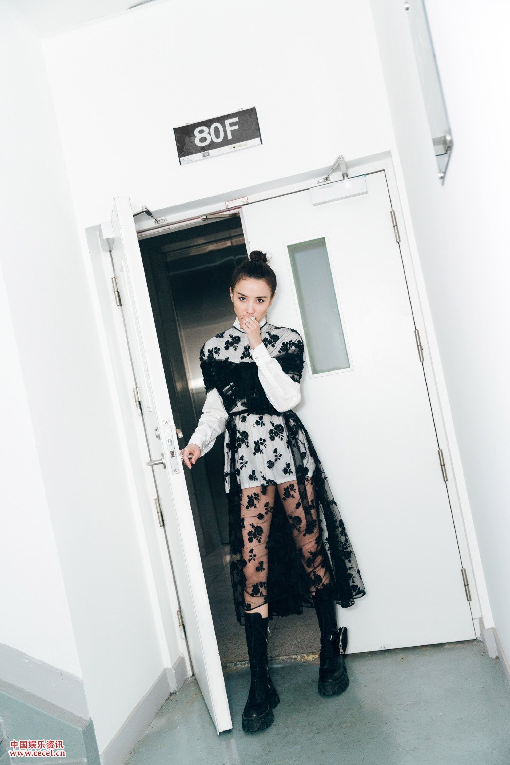 宋佳身着黑白蕾丝绑带纱裙 造型依然超飒