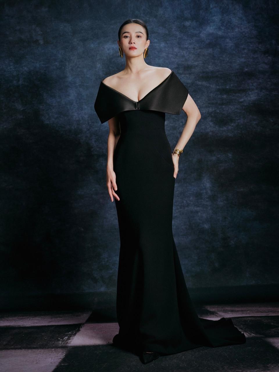 宋佳黛色衔光裙摆轻曳 影落生姿优雅自成