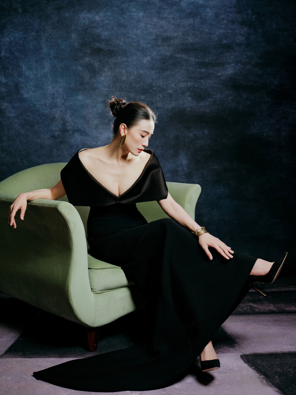 宋佳黛色衔光裙摆轻曳 影落生姿优雅自成