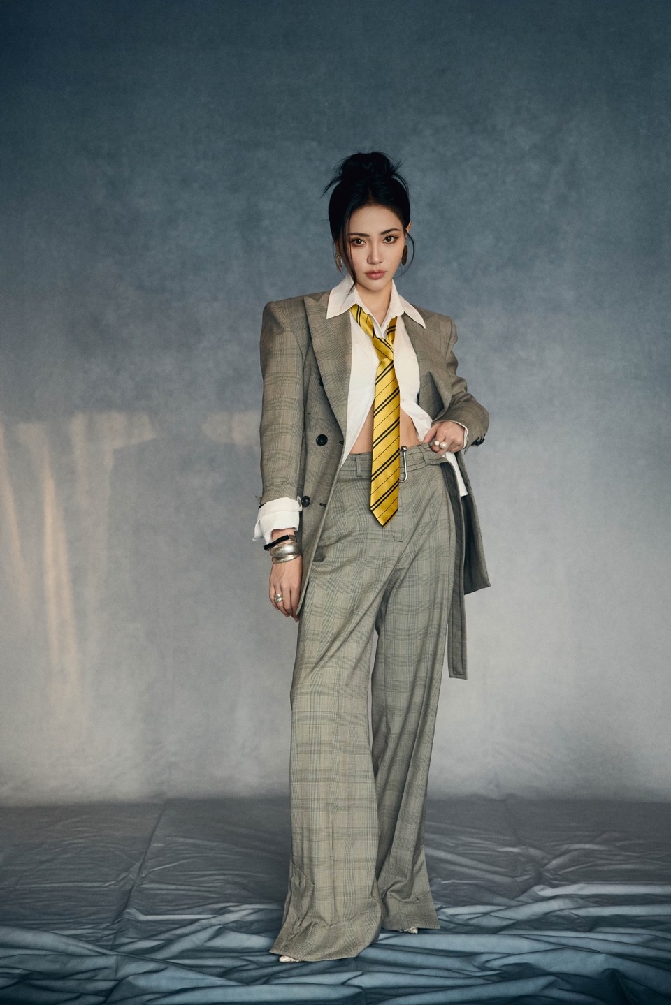 谢可寅格调西装黄领点缀 飒爽风姿定格此刻