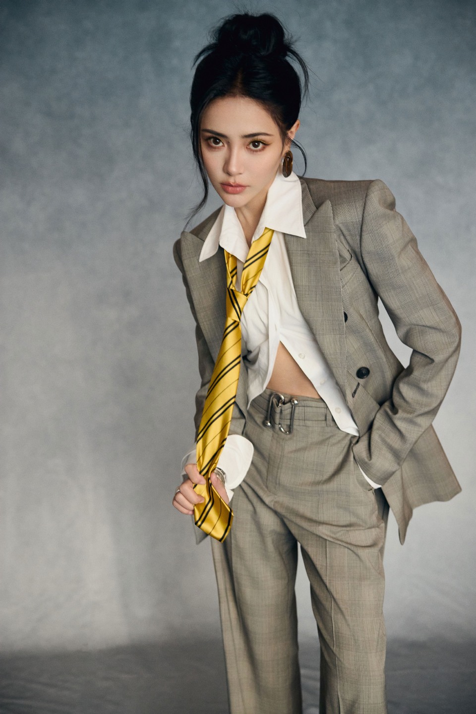 谢可寅格调西装黄领点缀 飒爽风姿定格此刻