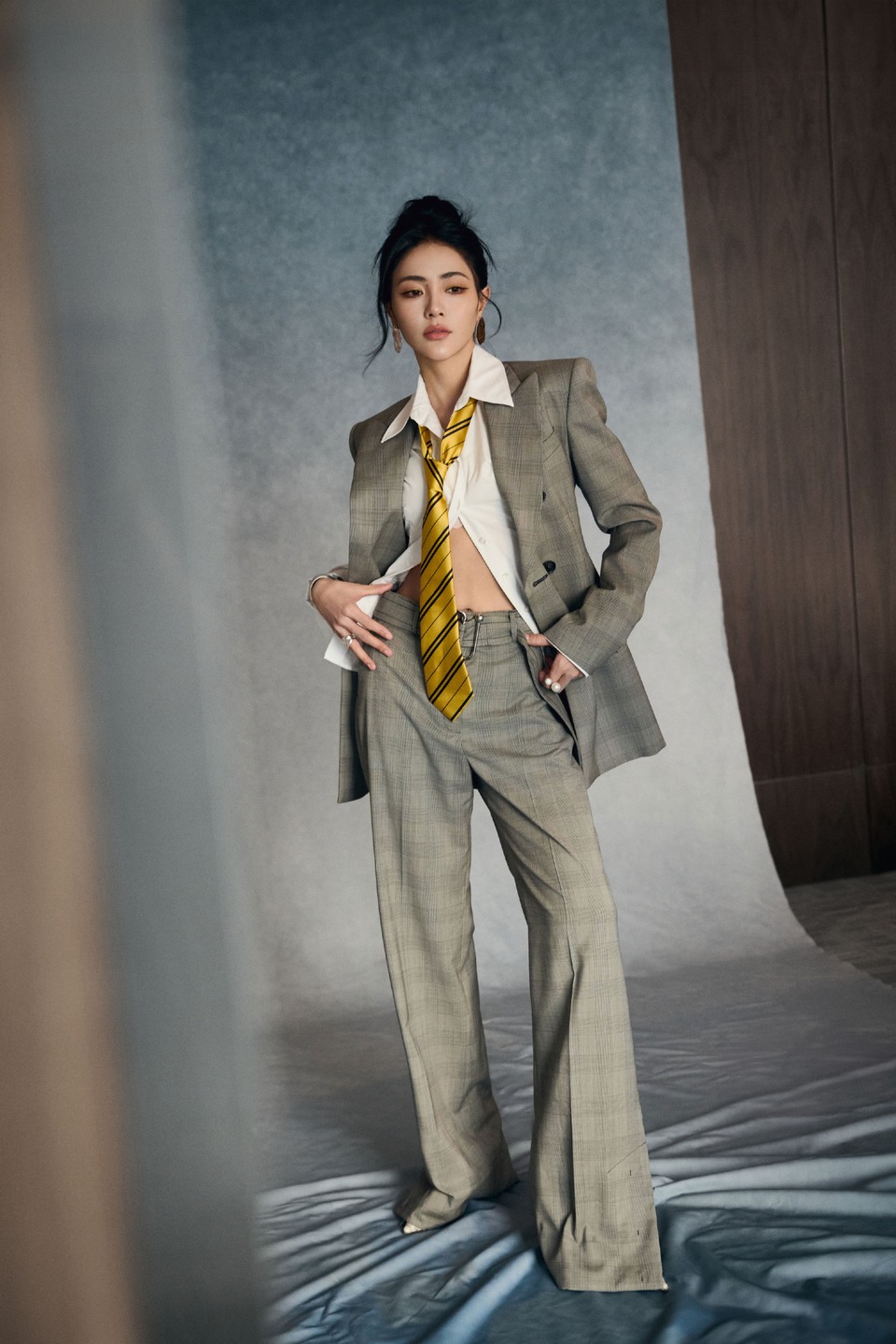 谢可寅格调西装黄领点缀 飒爽风姿定格此刻