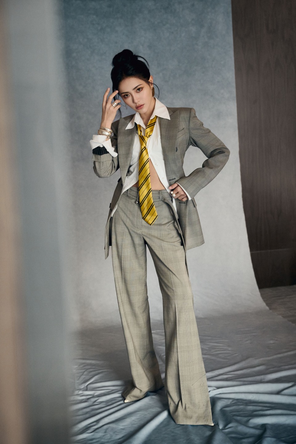 谢可寅格调西装黄领点缀 飒爽风姿定格此刻
