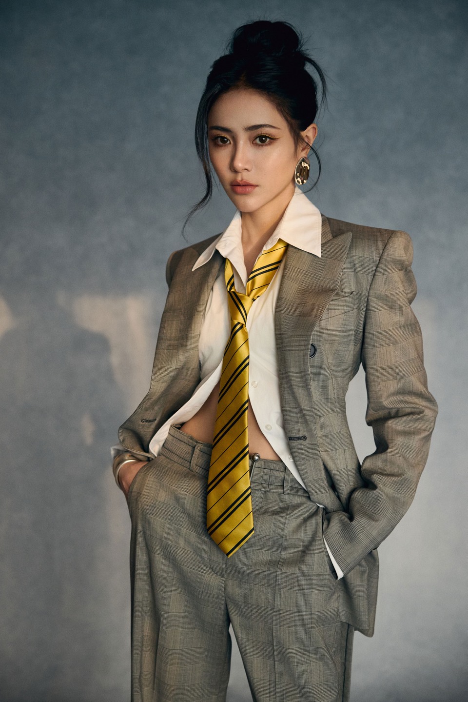 谢可寅格调西装黄领点缀 飒爽风姿定格此刻
