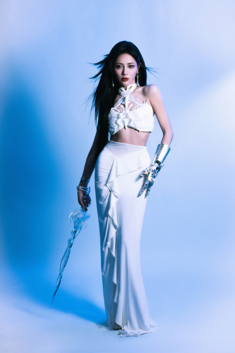 谢可寅银臂环若星芒缀饰 白色长裙似云霭摇曳梦幻涟漪