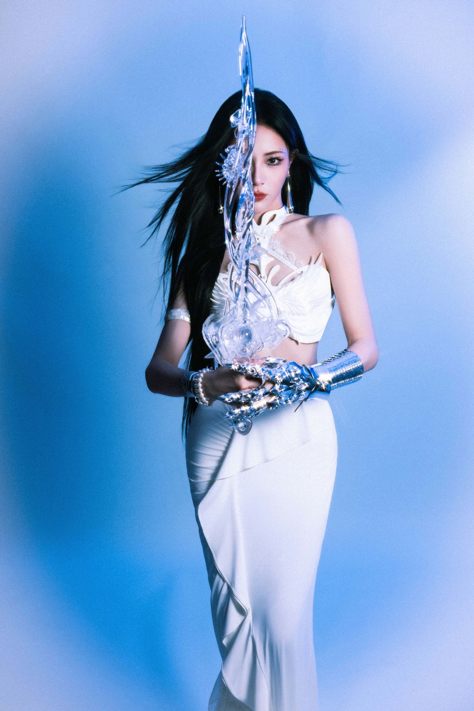 谢可寅银臂环若星芒缀饰 白色长裙似云霭摇曳梦幻涟漪
