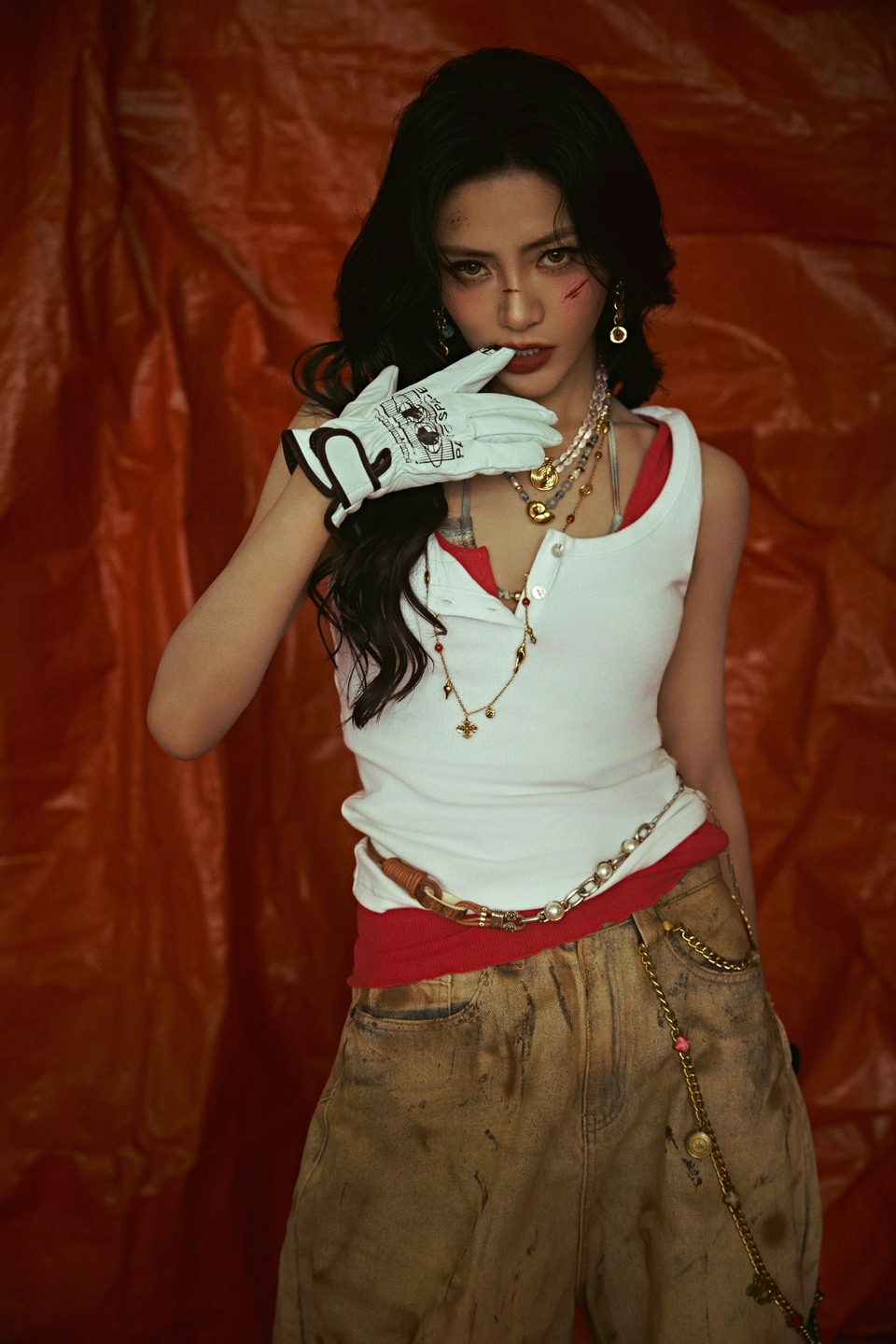 谢可寅珍珠与金属层叠缠绕 腰间银链随节奏摆动