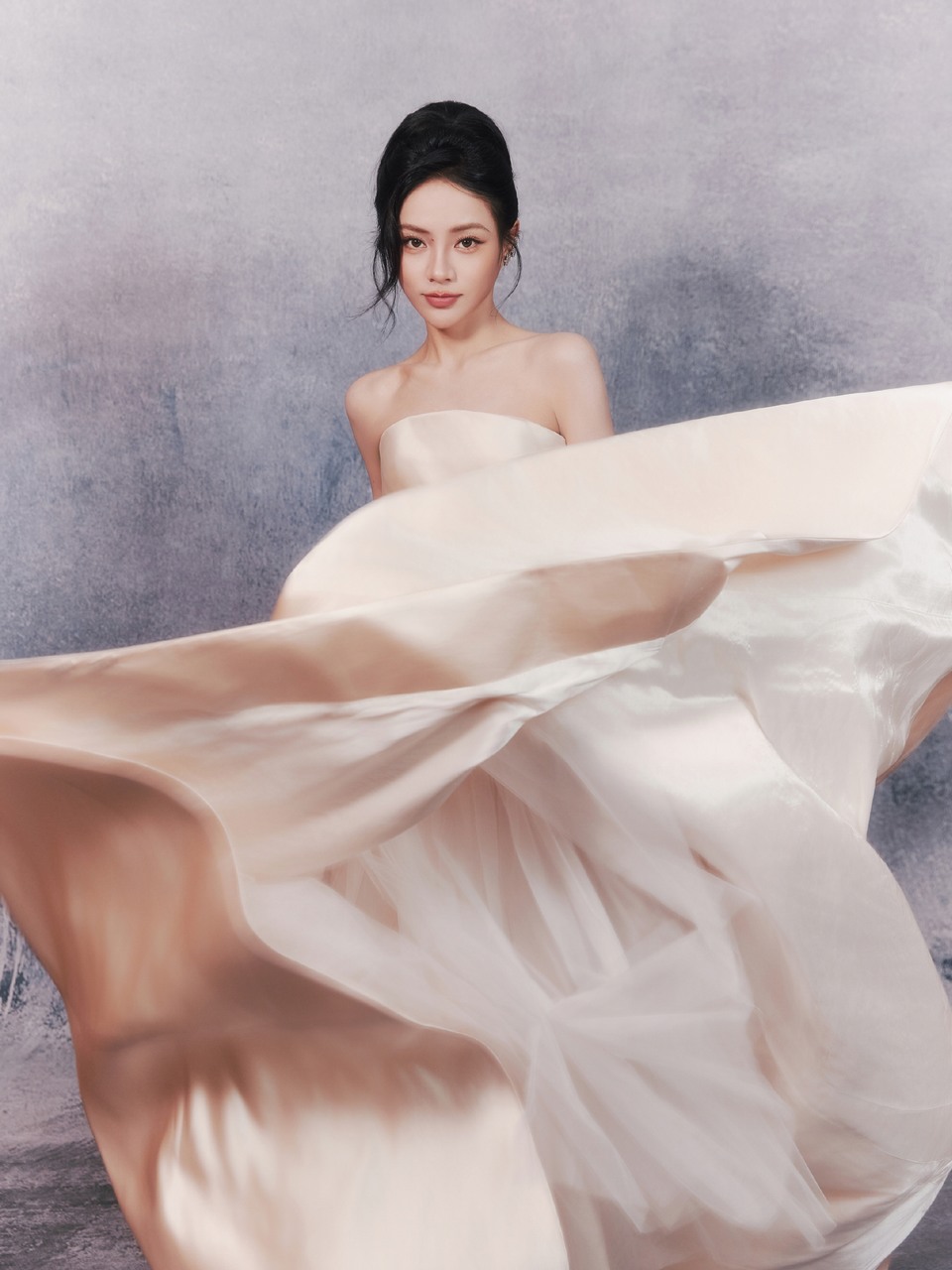 谢可寅香槟色抹胸礼裙 在光影间勾勒出优雅轮廓