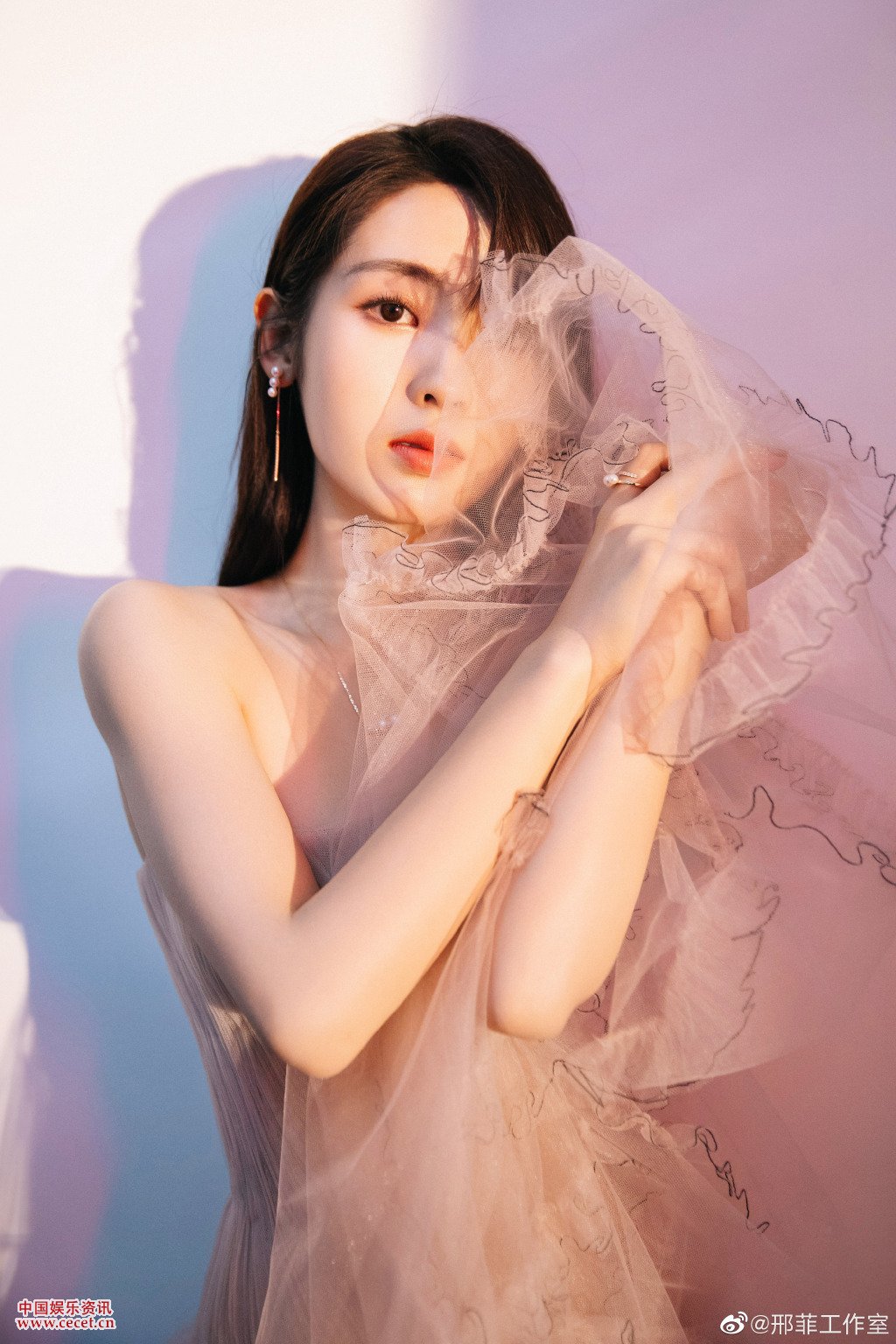 邢菲裸色抹胸仙女裙 光影迷离气质温柔甜美