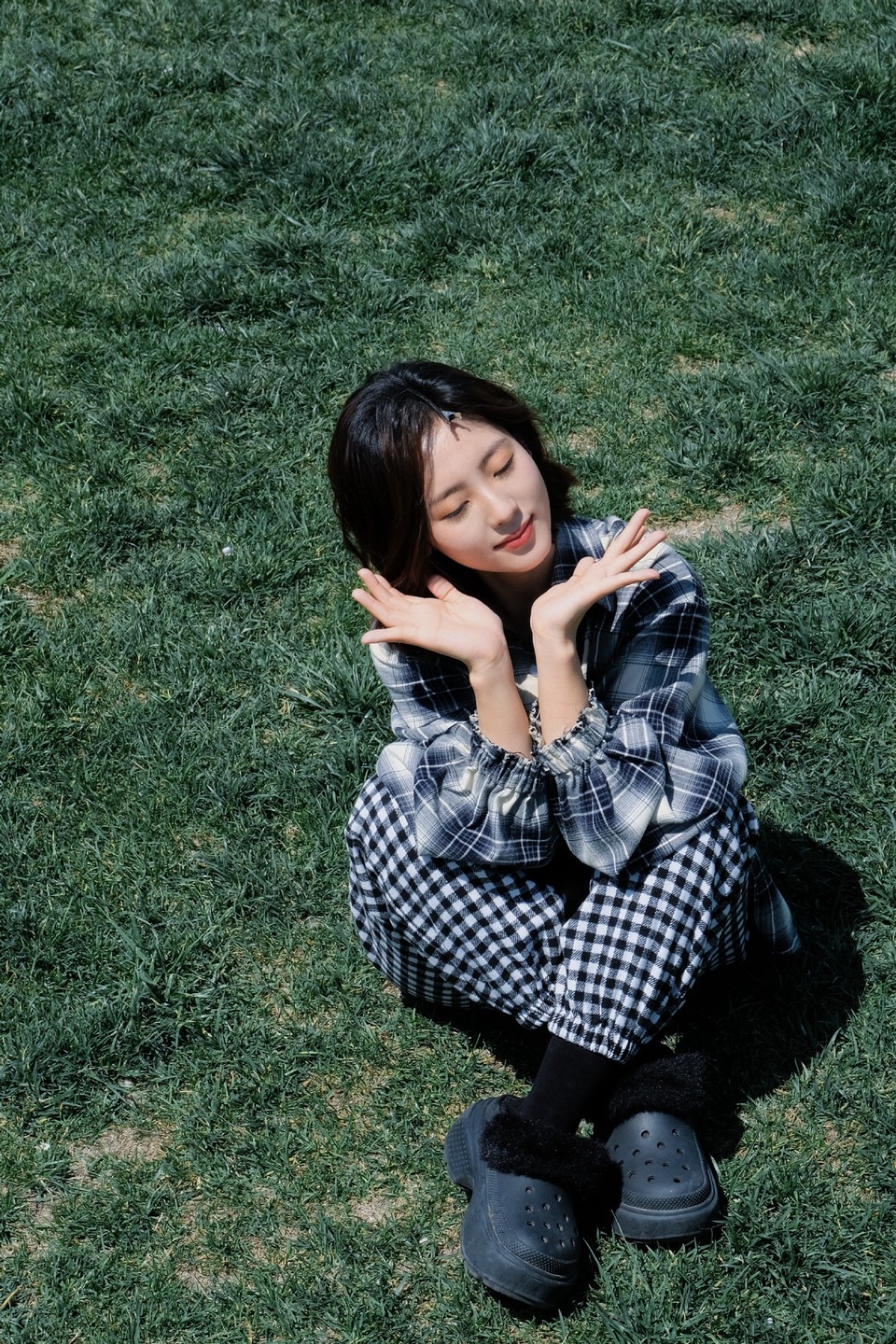 邢菲一个满分的午后 在青草地上被太阳晒成快乐小狗