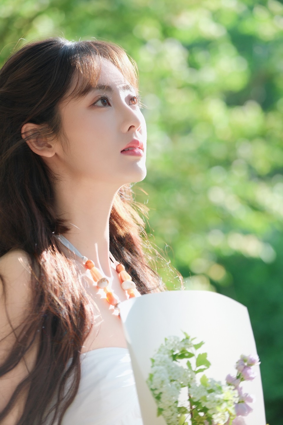 邢菲白裙清扬风挽发丝 共度佳节浪漫已送达