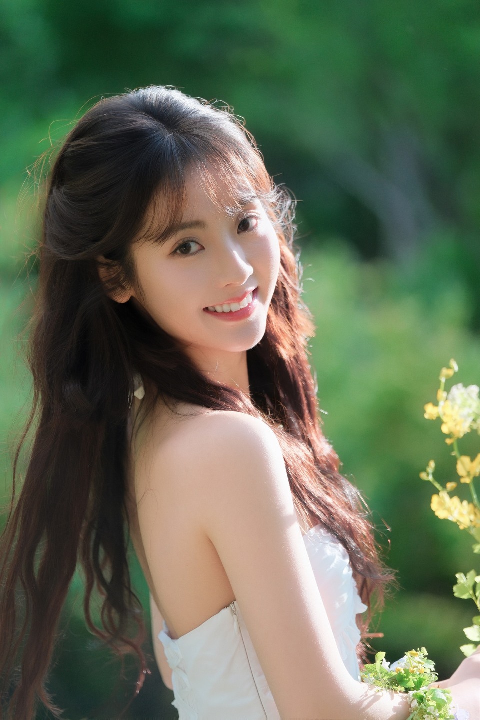 邢菲白裙清扬风挽发丝 共度佳节浪漫已送达