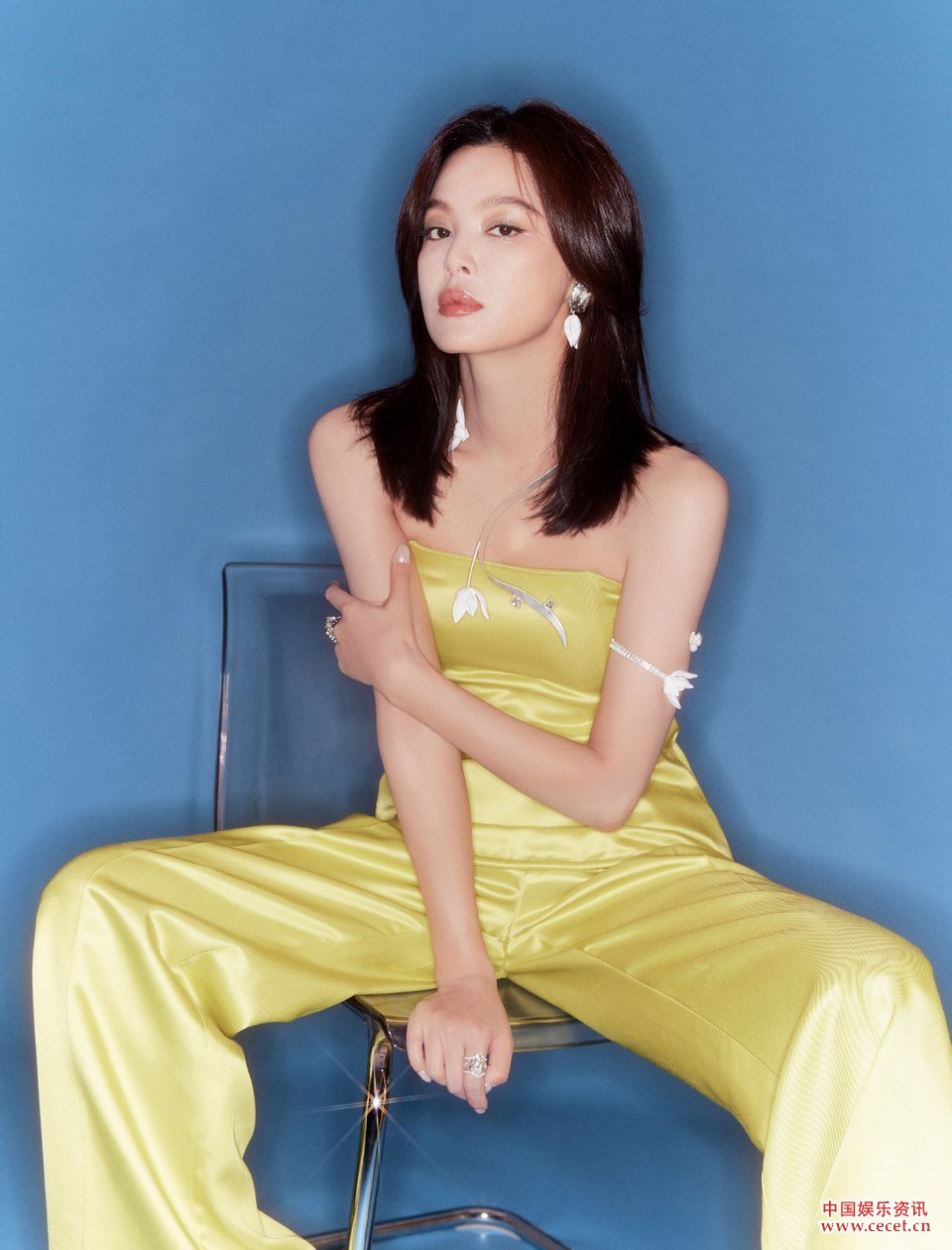 辛芷蕾一袭明黄色套装 潇洒定格从容风采