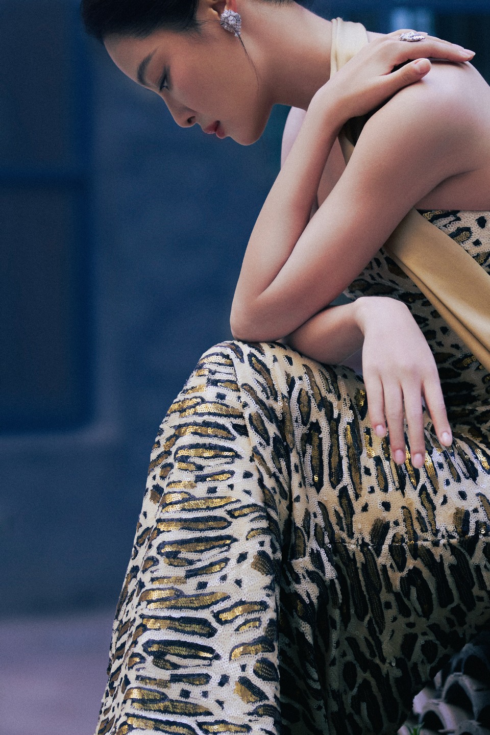 单依纯暮色轻笼浅纱曳地
