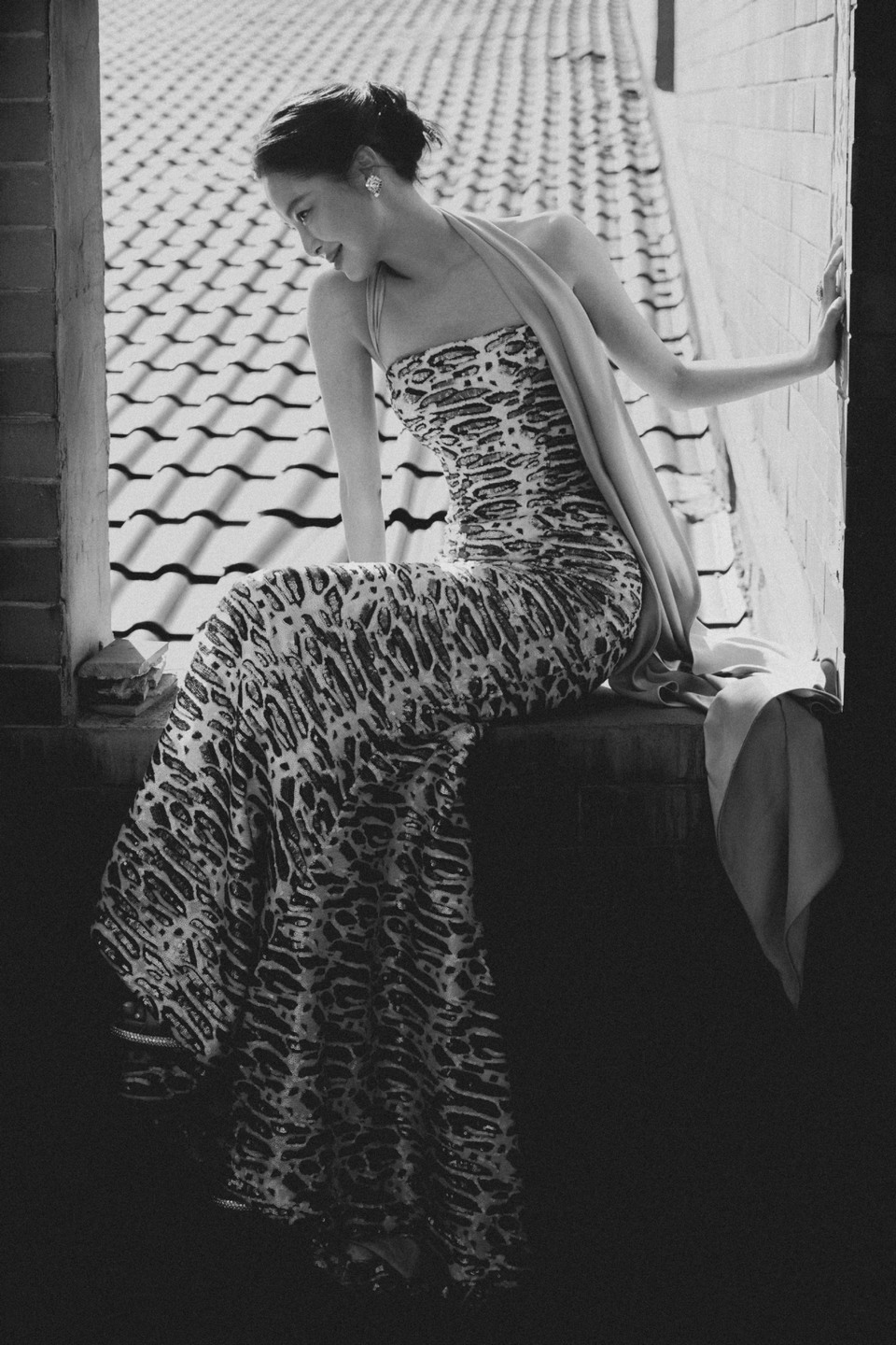 单依纯暮色轻笼浅纱曳地