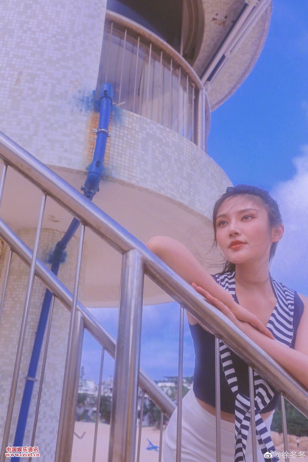 徐冬冬海边沙滩复古照 五官精致露出马甲线