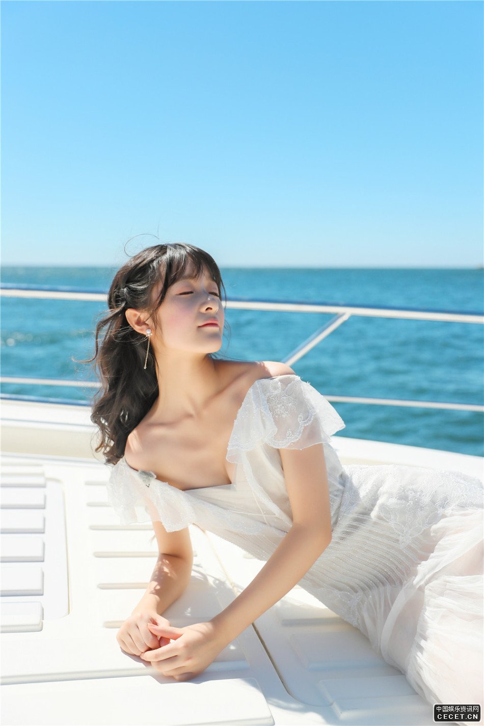 徐娇白裙薄纱轻盈飘逸 身姿宛如海上仙子