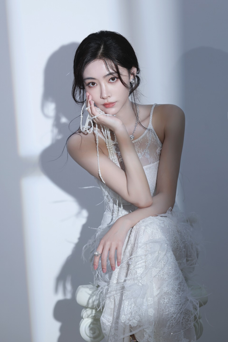 章若楠纯白裙摆轻轻扫过