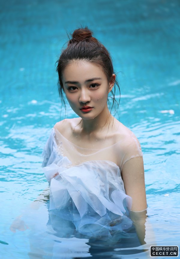 徐璐身着薄如蝉翼轻盈飘逸的水蓝色纱衣