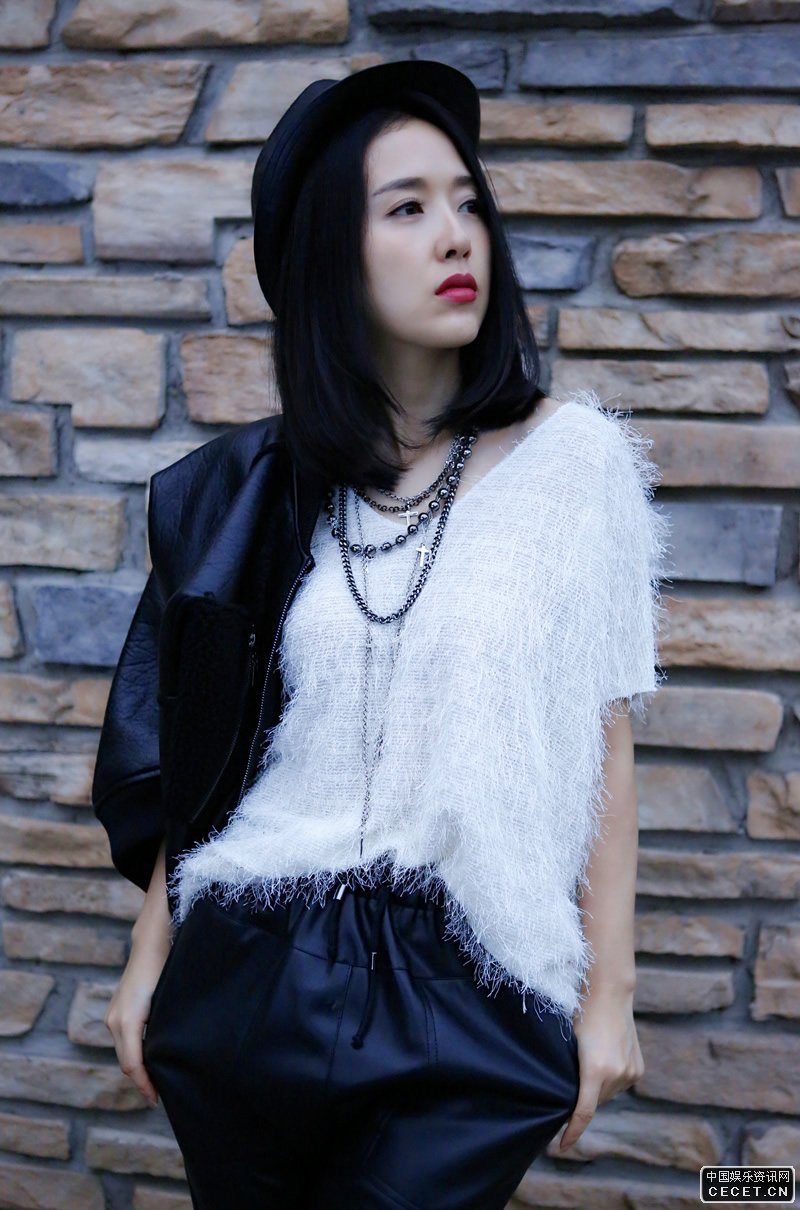 颜丹晨街拍曝光 在镜头却玩起娇俏嘻哈风