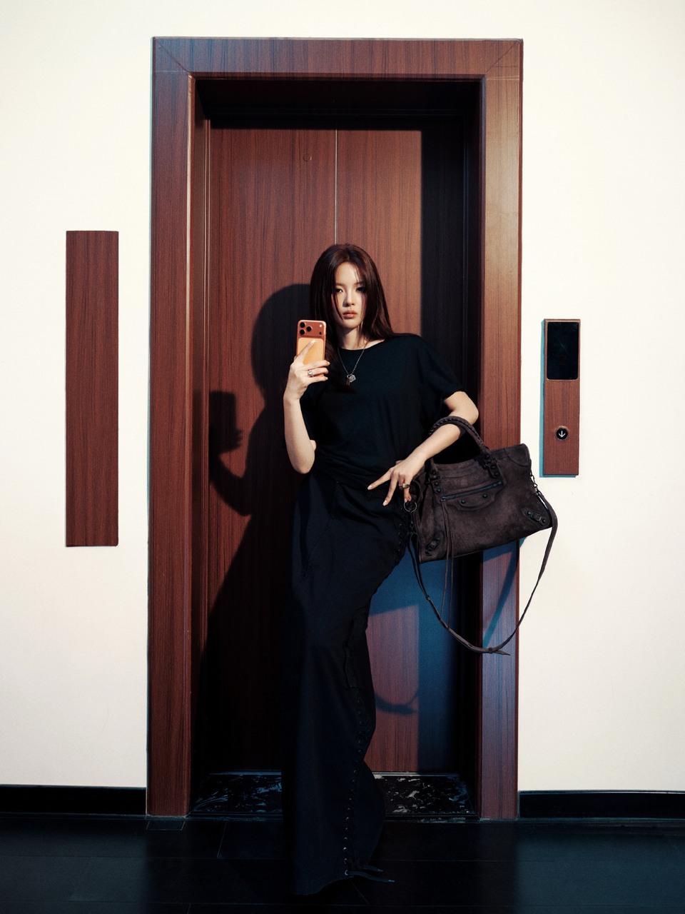 姚晨粉缎如霞衬出黑白隽永