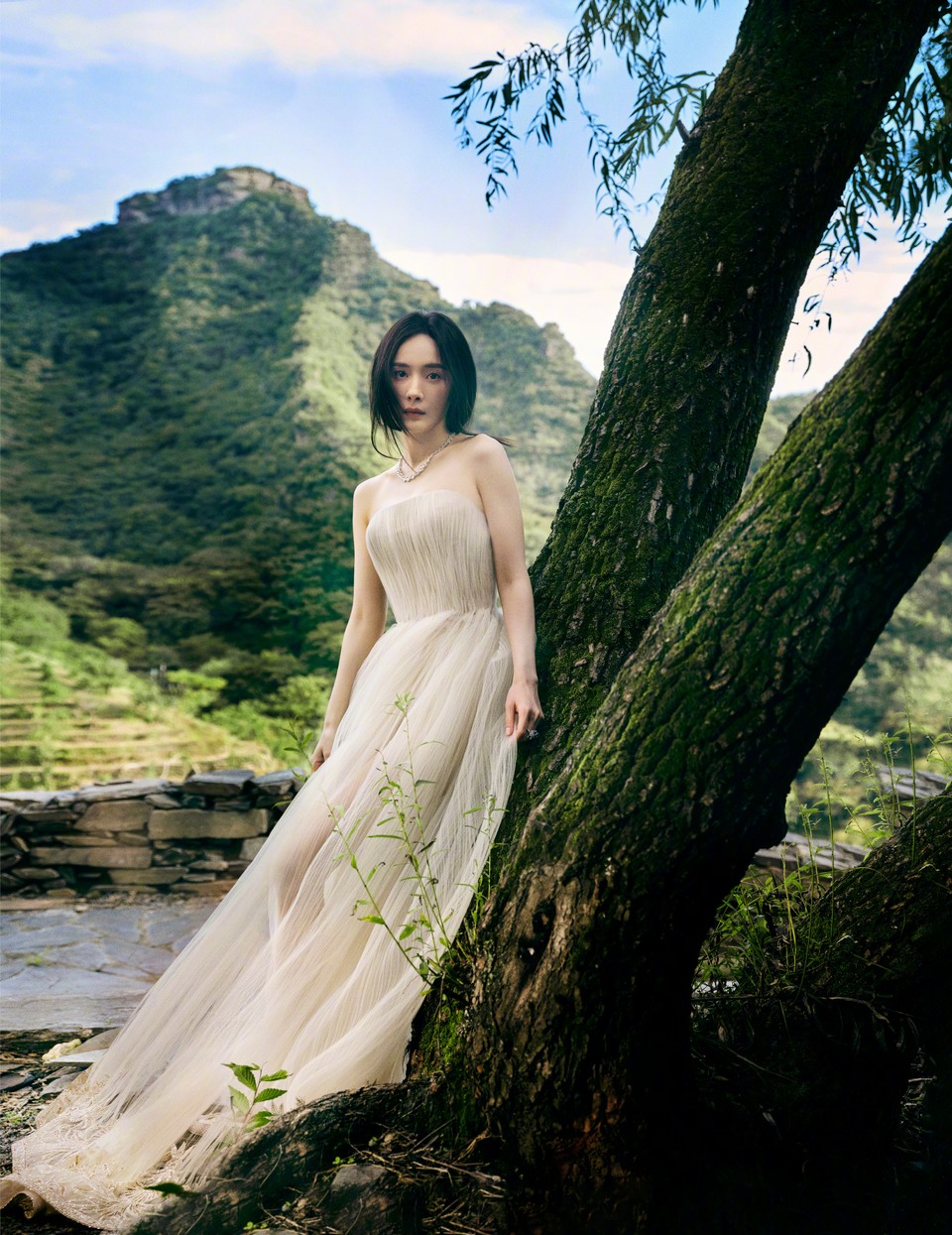 杨紫轻柔的纱复刻花瓣的脉络
