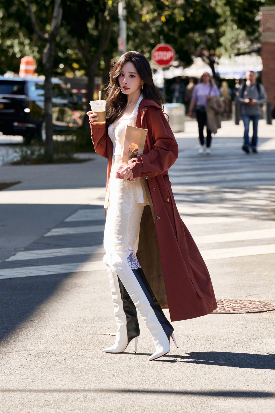 杨幂漫步街头每一步都带着的从容 是在光下透出的惬意