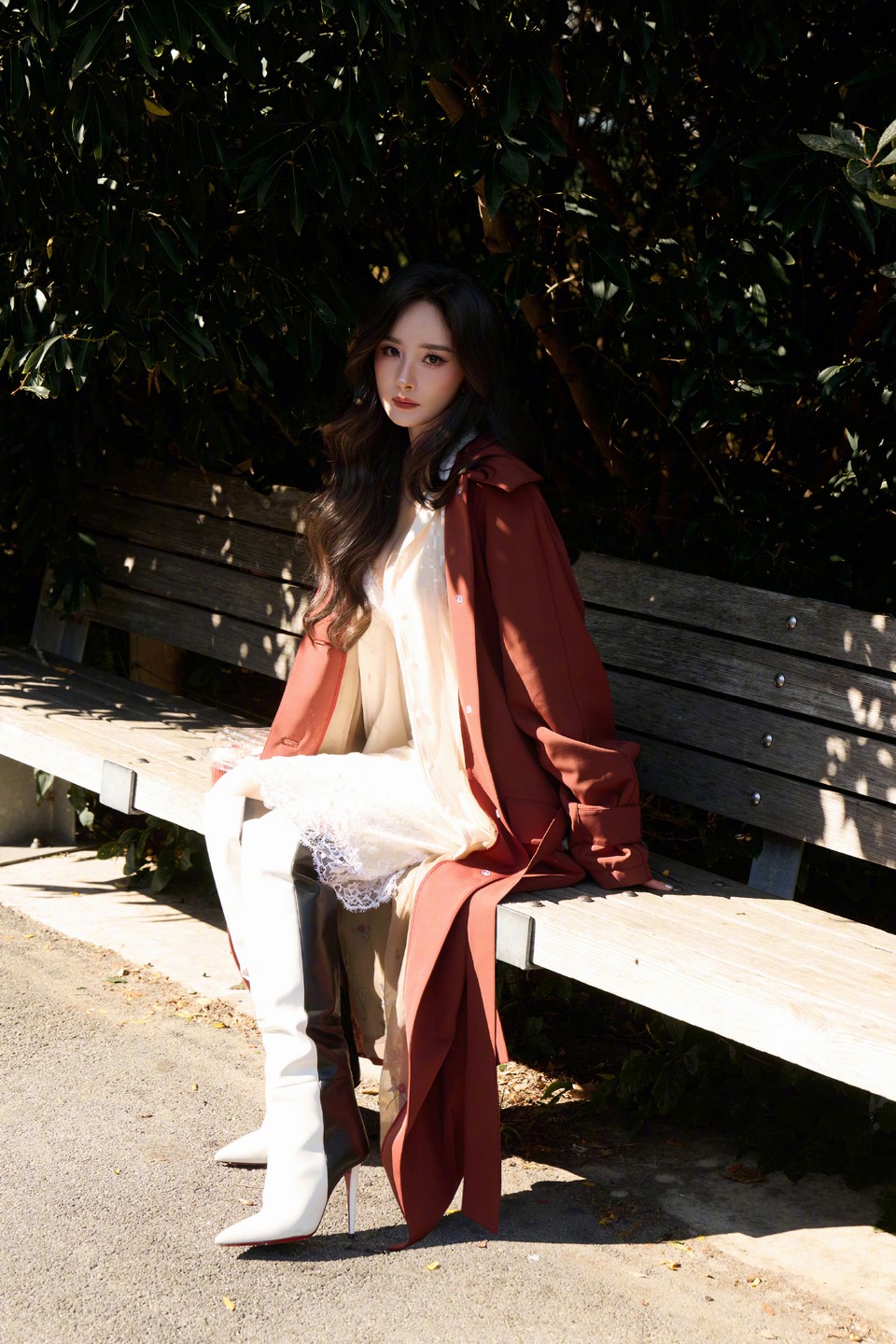 杨幂漫步街头每一步都带着的从容 是在光下透出的惬意