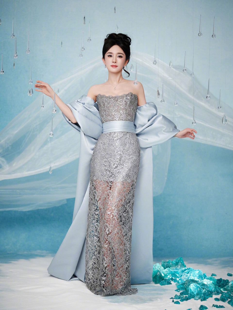 杨紫一抹蓝缱绻于轻纱氤氲丝丝心