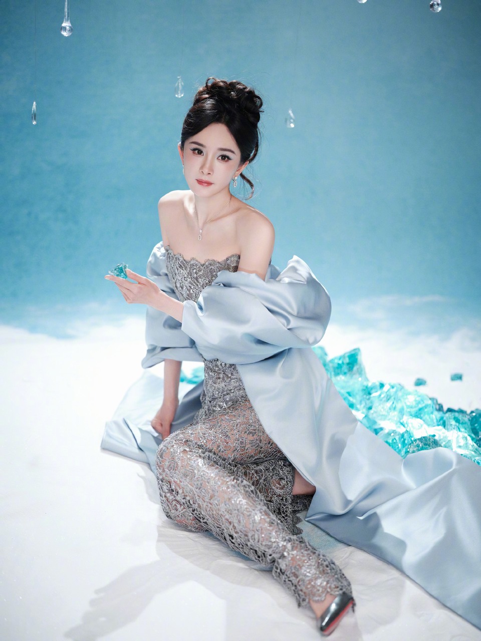 杨紫一抹蓝缱绻于轻纱氤氲丝丝心