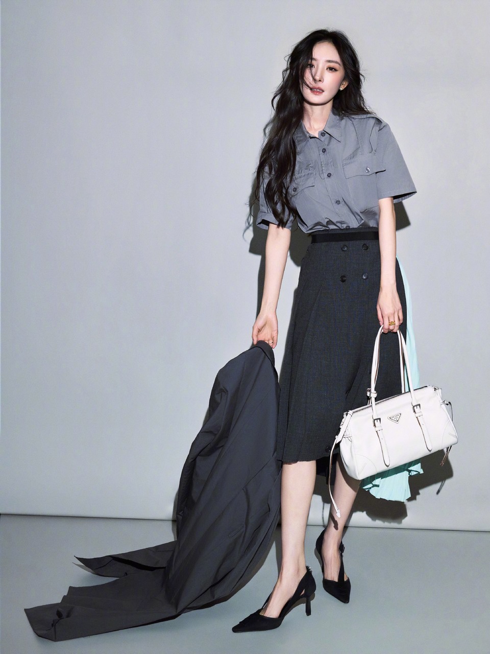 单依纯侧影裙摆随风飘