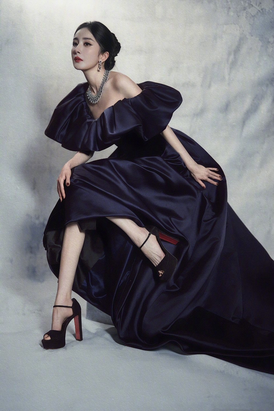 宋佳黛色衔光裙摆轻曳
