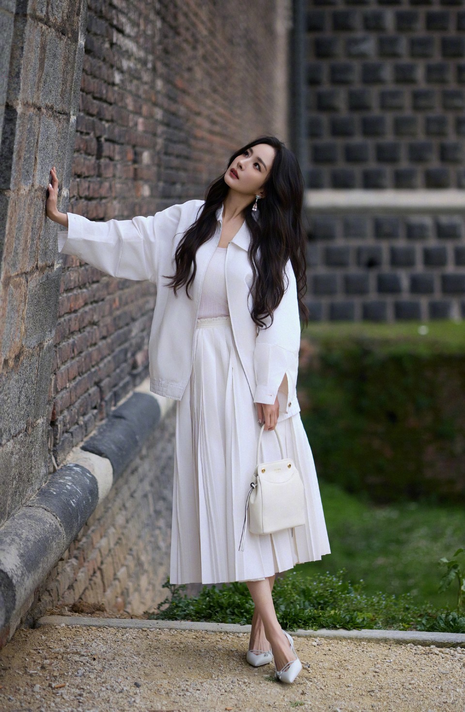 杨幂街角转弯惬意自在 择一日晴空把脚步交给米兰